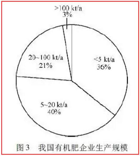 據(jù)農(nóng)業(yè)部全國(guó)農(nóng)業(yè)技術(shù)推廣服務(wù)中心統(tǒng)計(jì),目前全國(guó)規(guī)模有機(jī)肥生產(chǎn)企業(yè)有2282 家,以中、小型為主(圖 3),產(chǎn)能在100 kt /a 以上的企業(yè)數(shù)量?jī)H占3%,其中:有機(jī)肥企業(yè)986 家,占有機(jī)肥生產(chǎn)企業(yè)總數(shù)的43%;生物有機(jī)肥企業(yè)296 家,占13%;有機(jī)無(wú)機(jī)復(fù)混肥企業(yè)809 家,占35%;其他企業(yè)192 家,占9%。從產(chǎn)能看,有機(jī)肥企業(yè)設(shè)計(jì)產(chǎn)能34820 kt /a,年產(chǎn)量16300 kt,產(chǎn)能發(fā)揮率僅為47%。