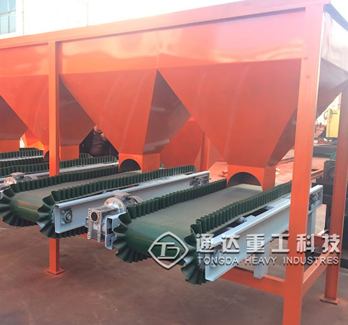 2、混合設(shè)備可由變速的平面膠帶機和帶狀葉片的螺旋輸送機組成。先使各種配料在膠帶機面上呈層狀疊鋪,為下階段混合創(chuàng)造均布條件。計量螺旋機(必要時改用膠帶機也可)的下料要沿受料帶寬均勻布料,避免起塵和沖擊料面。